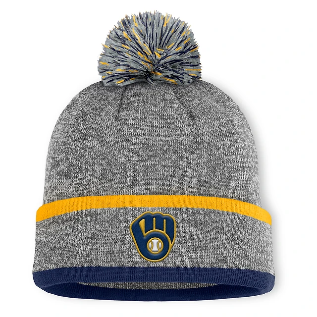 Bonnet en tricot à revers et pompon Fanatics Backstop gris chiné pour homme des Milwaukee Brewers