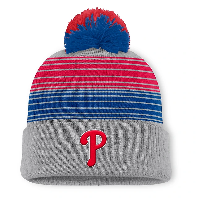 Bonnet en tricot à revers et pompon gris pour homme, Fanatics des Philadelphia Phillies
