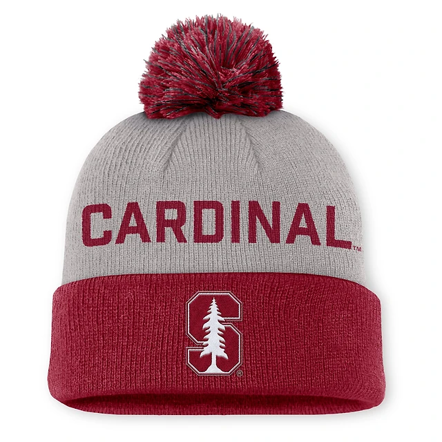 Bonnet en tricot à revers et pompon Nike Stanford Cardinal Primetime Peak pour homme, gris/cardinal