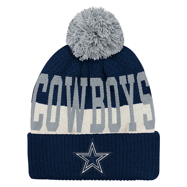 Bonnet en tricot à revers et pompon pour jeunes Cowboys de Dallas, bleu marine, style moderne, Outerstuff