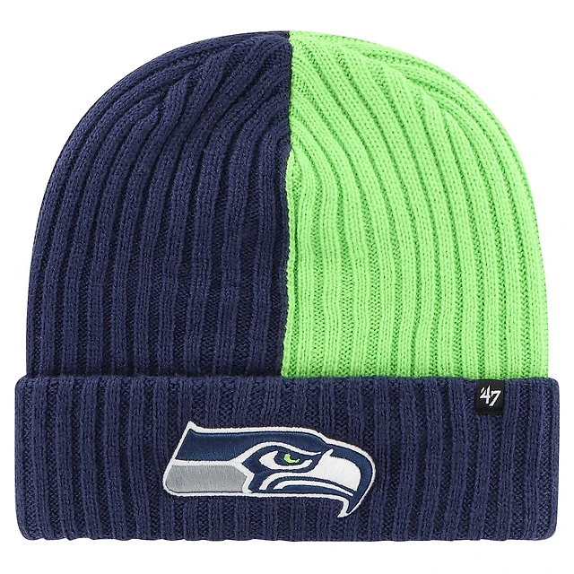 Bonnet en tricot à revers Fracture des Seattle Seahawks '47 bleu marine pour hommes