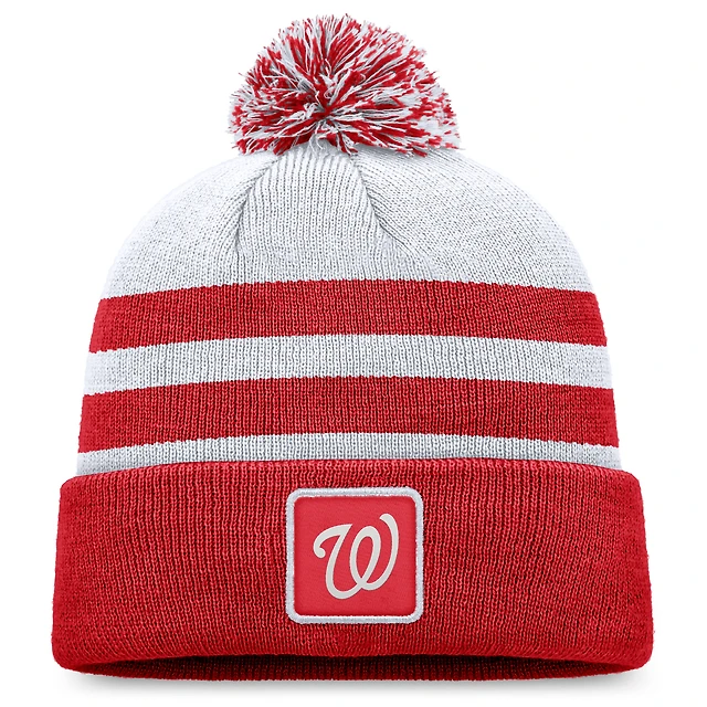 Bonnet en tricot à revers gris Washington Nationals Fanatics pour hommes avec pompon