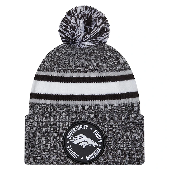 Bonnet en tricot à revers Inspire Change New Era noir Denver Broncos pour hommes avec pompon