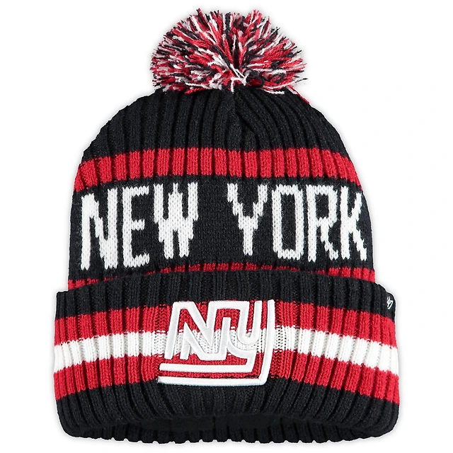 Bonnet en tricot à revers Legacy Bering des New York Giants '47 bleu marine pour homme avec pompon