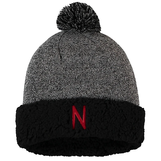 Bonnet en tricot à revers Nebraska Huskers noir Top of the World pour femmes avec pompon