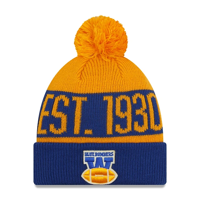 Bonnet en tricot à revers New Era bleu Winnipeg Blue Bombers Turf Traditions pour hommes avec pompon