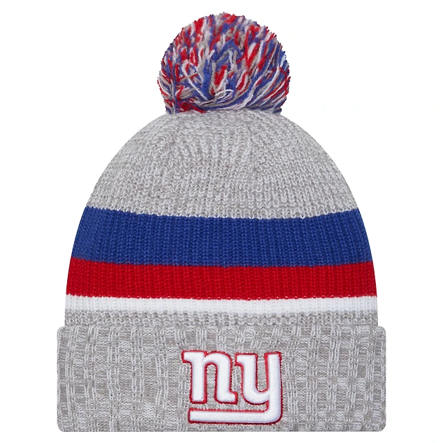Bonnet en tricot à revers New Era Heather Grey New York Giants pour jeune avec pompon
