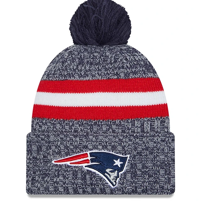 Bonnet en tricot à revers New Era New England Patriots 2023 Sideline pour hommes avec pompon