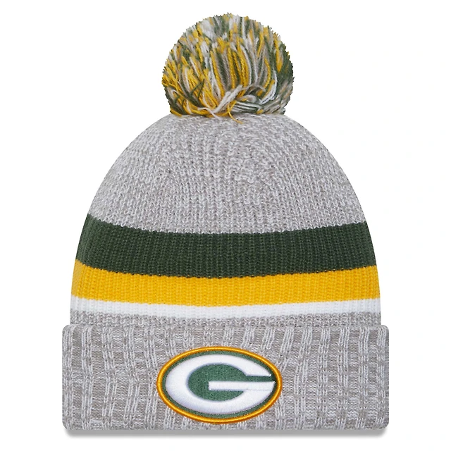 Bonnet en tricot à revers New Era pour hommes, gris chiné, Green Bay Packers, avec pompon