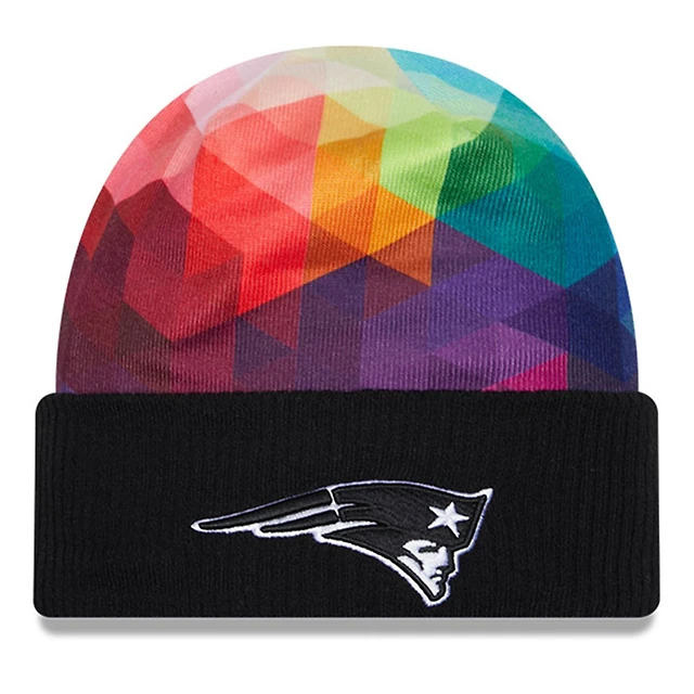 Bonnet en tricot à revers NFL Crucial Catch New Era noir pour hommes des New England Patriots 2023