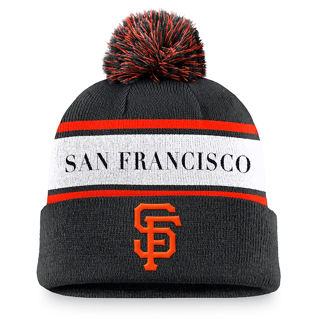 Bonnet en tricot à revers Nike pour hommes, noir, San Francisco Giants Team Stripe Peak, avec pompon