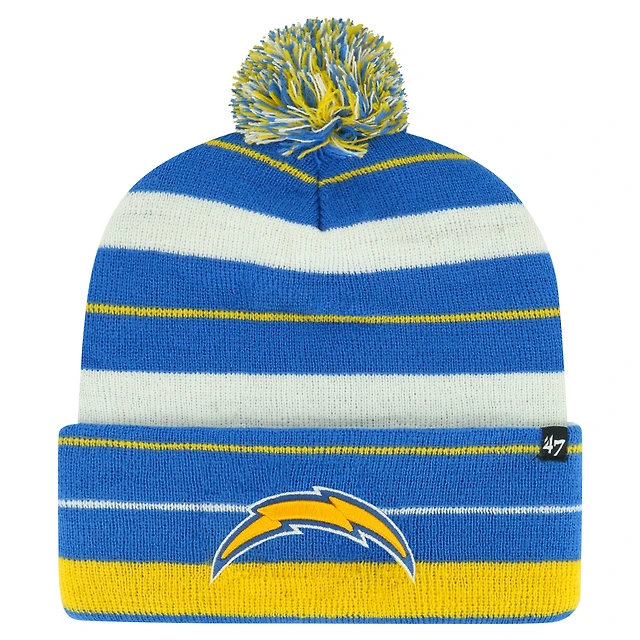 Bonnet en tricot à revers Powerline des Chargers de Los Angeles '47 bleu poudré pour hommes avec pompon