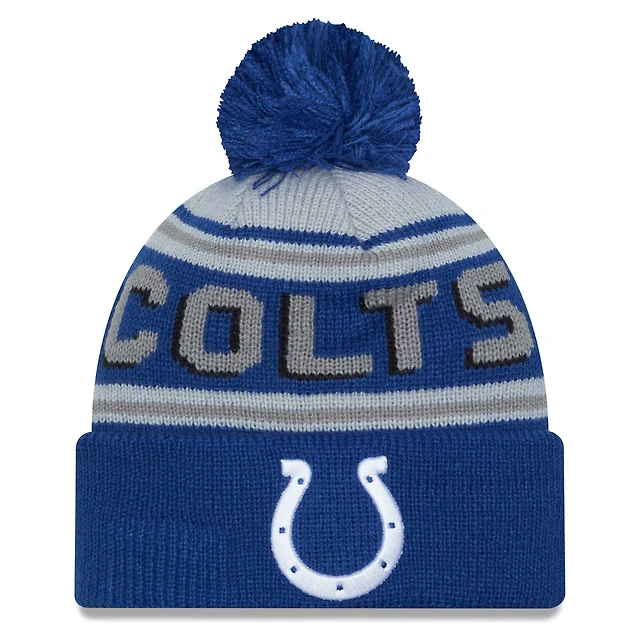 Bonnet en tricot à revers principal bleu Indianapolis Colts New Era pour hommes avec pompon