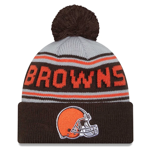 Bonnet en tricot à revers principal Cleveland Browns New Era marron avec pompon pour hommes