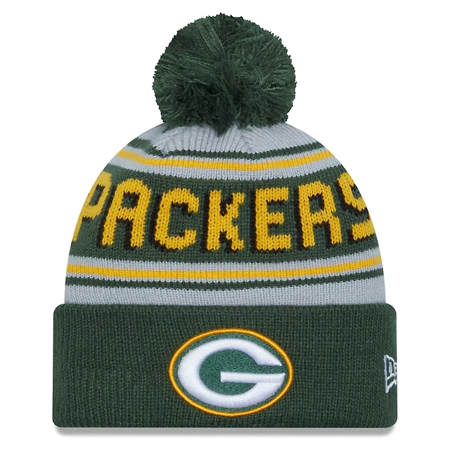 Bonnet en tricot à revers principal Green Bay Packers New Era pour hommes avec pompon