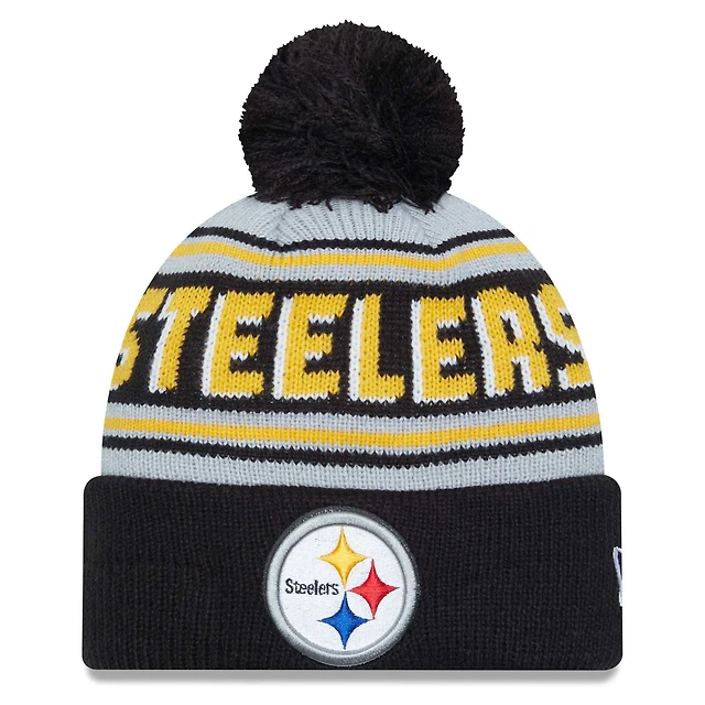 Bonnet en tricot à revers principal New Era noir des Pittsburgh Steelers pour hommes avec pompon