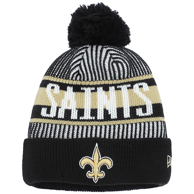 Bonnet en tricot à revers rayé New Era New Orleans Saints noir avec pompon pour jeune