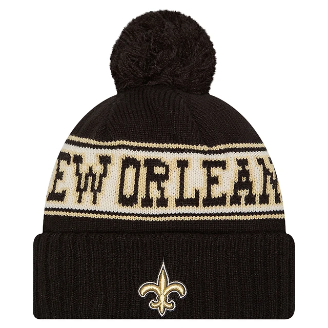 Bonnet en tricot à revers rétro New Era New Orleans Saints noir pour homme avec pompon