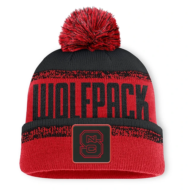 Bonnet en tricot à revers rouge/noir avec pompon pour homme Fanatics NC State Wolfpack Thrive
