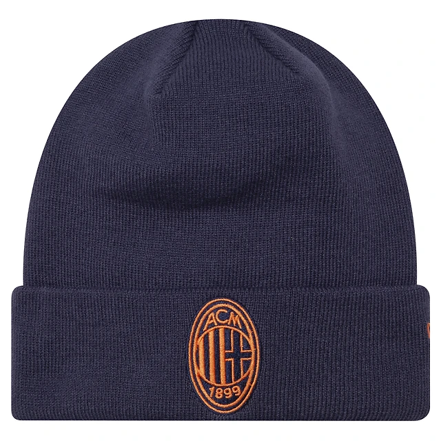 Bonnet en tricot à revers saisonnier AC Milan New Era pour homme bleu marine