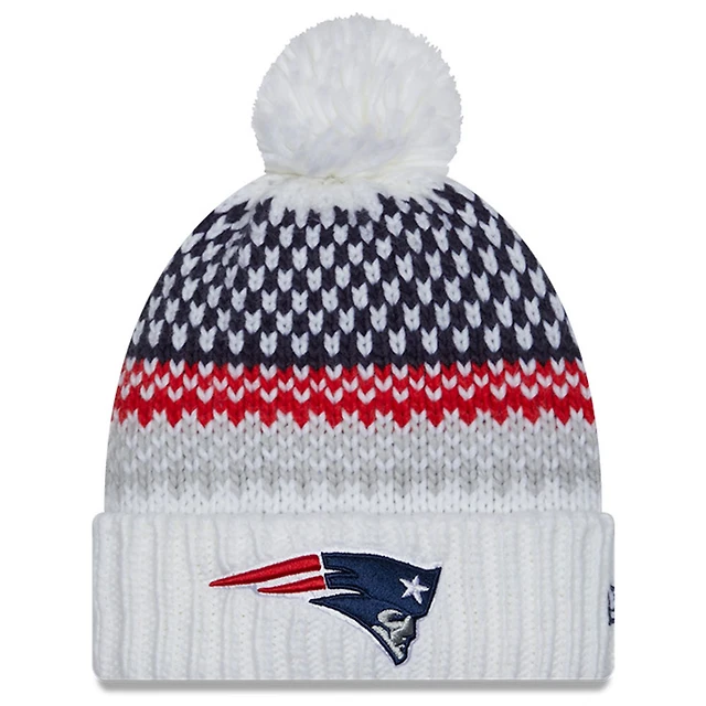Bonnet en tricot à revers Sideline New Era New England Patriots 2023 pour femme avec pompon