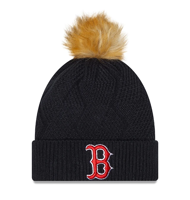 Bonnet en tricot à revers Snowy Boston Red Sox pour femme New Era bleu marine avec pompon