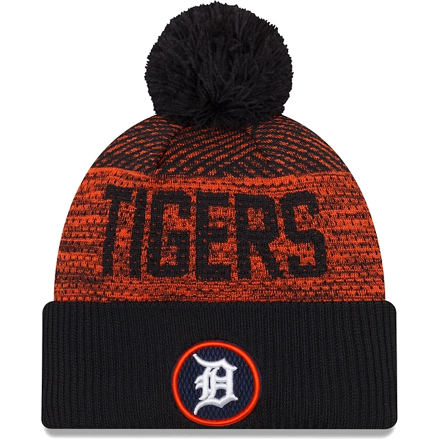 Bonnet en tricot à revers sport avec pompon pour homme Detroit Tigers Authentic Collection New Era bleu marine