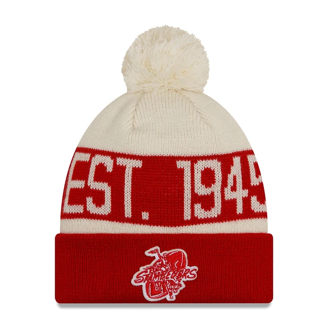 Bonnet en tricot à revers Turf Traditions des Stampeders de Calgary New Era rouge pour hommes avec pompon