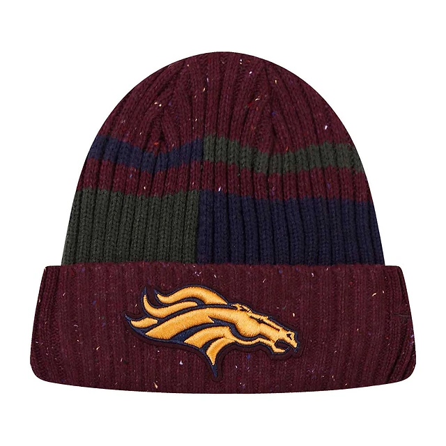 Bonnet en tricot moucheté à revers Denver Broncos Pro Standard bordeaux pour hommes