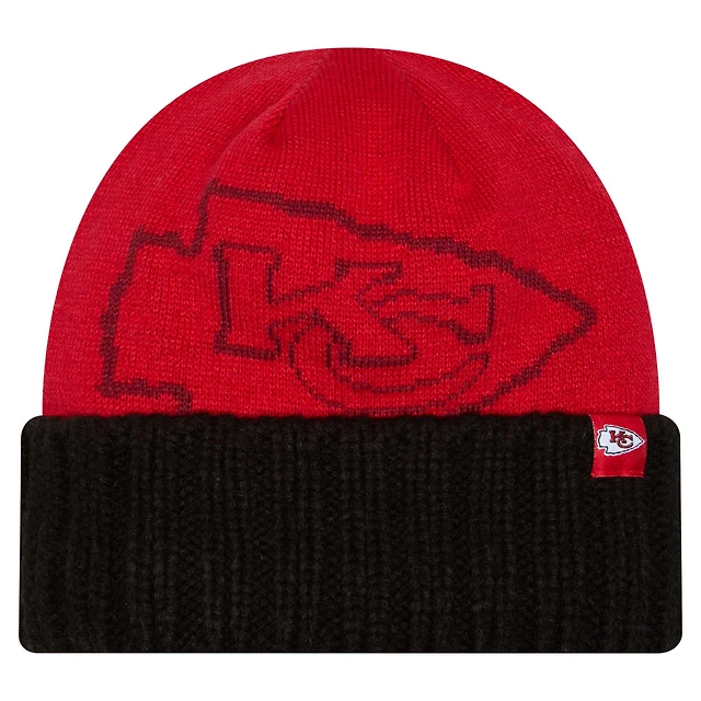 Bonnet en tricot oversize à revers rouge Kansas City Chiefs New Era pour homme