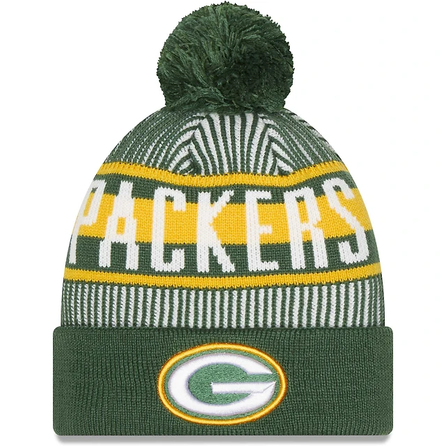 Bonnet en tricot rayé à revers et pompon New Era pour hommes, vert Green Bay Packers