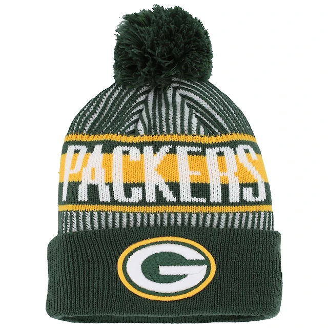 Bonnet en tricot rayé à revers pour jeune New Era vert Green Bay Packers avec pompon