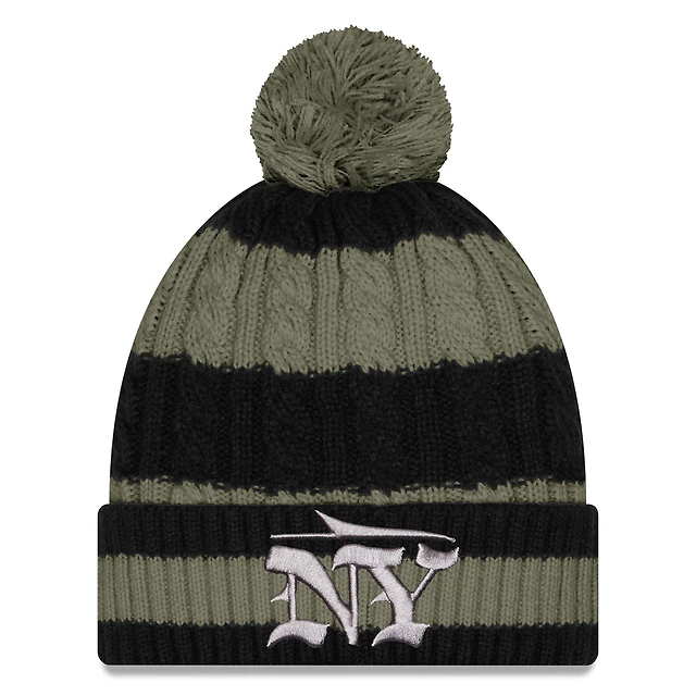 Bonnet en tricot tressé à revers avec pompon New Era Gotham Green New York Jets 2025 Rivalries Collection pour femme