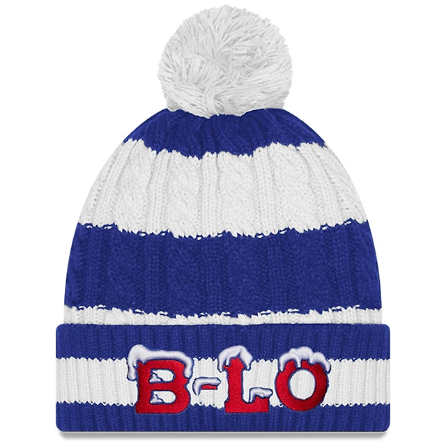 Bonnet en tricot tressé à revers avec pompon pour femme New Era Royal Buffalo Bills 2025 Rivalries Collection