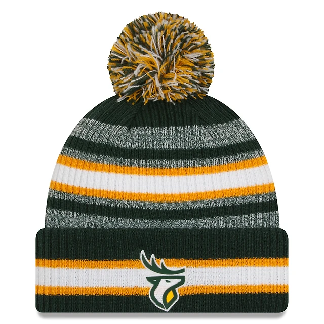 Bonnet en tricot vert à revers Edmonton Elks Sideline 6 Dart pour homme avec pompon New Era