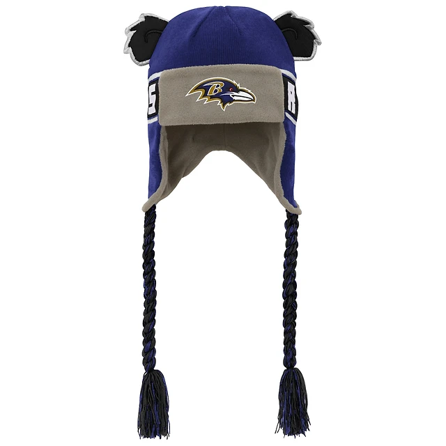 Bonnet en tricot violet pour jeunes Baltimore Ravens avec oreilles de soldat