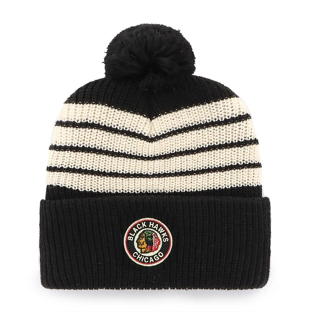 Bonnet tricoté à revers avec pompon pour homme, modèle Old Time Hockey Barn des Chicago Blackhawks, modèle 47, noir
