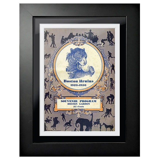 Boston Bruins 1929 Souvenir Program - Couverture de programme encadrée de 12 po x 16 po