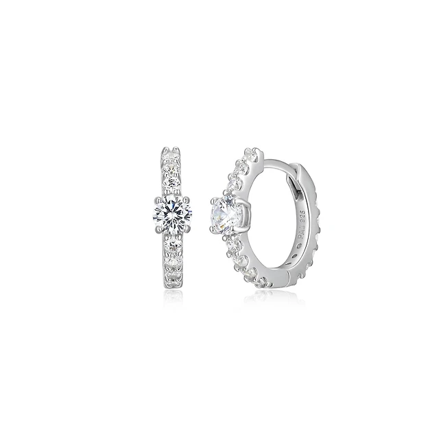 Boucles d'oreilles créoles avec pierre centrale ronde « Reign » en argent sterling et zircone cubique
