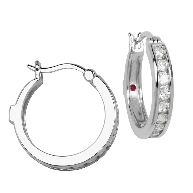 Boucles d'oreilles ELLE « Channel Set Hoop » en argent sterling et oxyde de zirconium cubique 20 mm