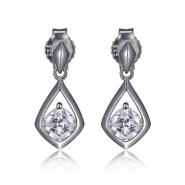 Boucles d'oreilles ELLE en argent sterling et oxyde de zirconium cubique taille coussin