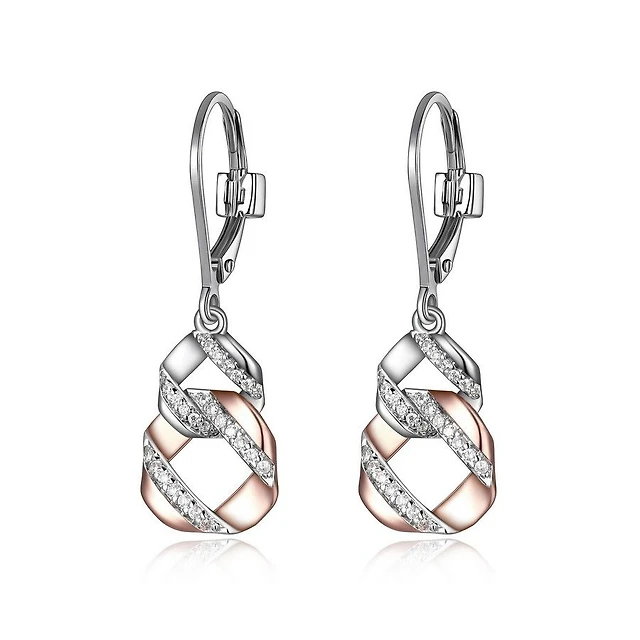 Boucles d'oreilles ELLE en argent sterling plaqué or rose et oxyde de zirconium cubique à 2 tons