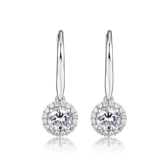 Boucles d'oreilles « Reign » halo rond avec fermoir à levier en argent sterling et zircone cubique