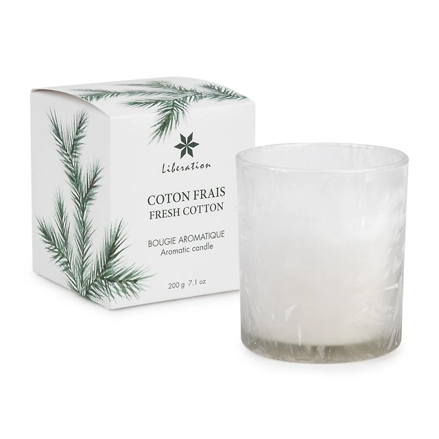 Bougie parfumée en verre blanc, Coton Frais