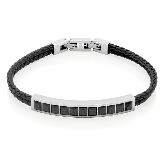 Bracelet en cuir « Steelx » en acier inoxydable et zircone cubique noire