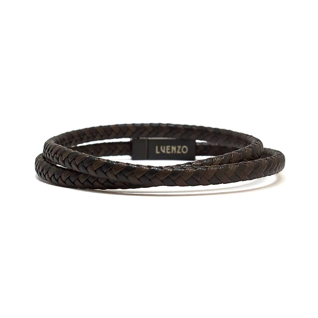 Bracelet en cuir véritable doublé et fermoir simple brun/noir par Luenzo