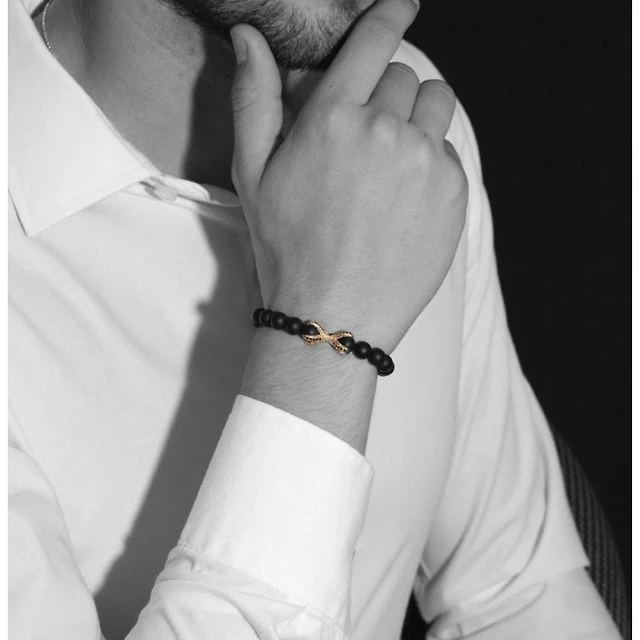 Bracelet onyx noir avec griffes or rose par Luenzo