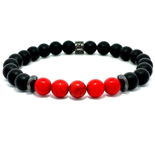 Luenzo Black Onyx and Red/Black Jade Bracelet