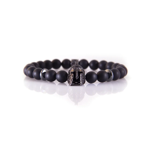 Bracelet onyx noir « Warrior Helmet » par Luenzo