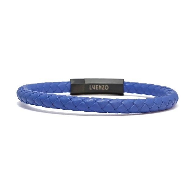 Bracelet simple en cuir véritable « Bleu de France » par Luenzo